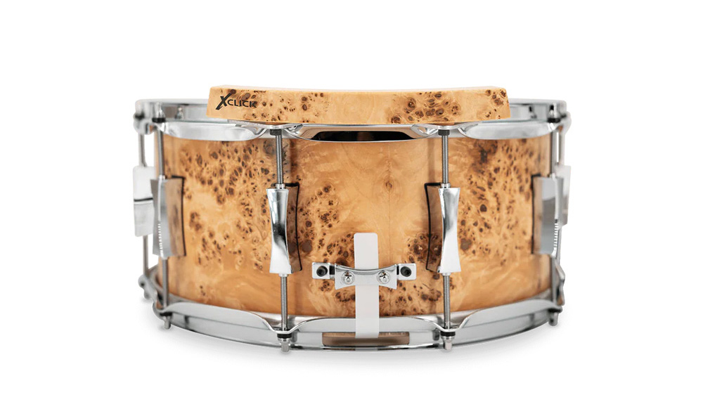 The X-CLICK by X Percussion is a hybrid-bodied instrument designed to elevate your snare drum’s cross-stick sound effortlessly, especially on smaller snare drums. Crafted from layered 24-ply hard rock maple, infused with copper and contoured to the shape of your drum, this enhancer produces a natural, fat, robust cross-stick sound when struck with the tip, shaft or butt of your drumsticks.