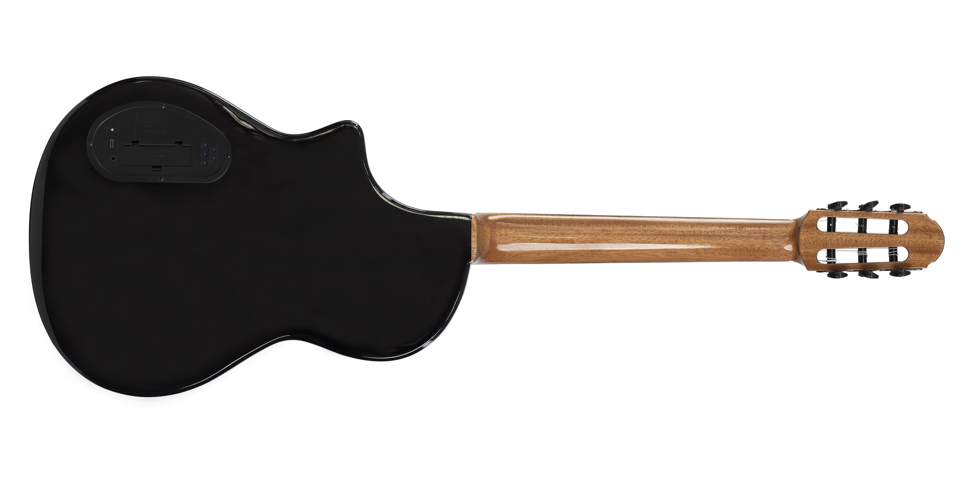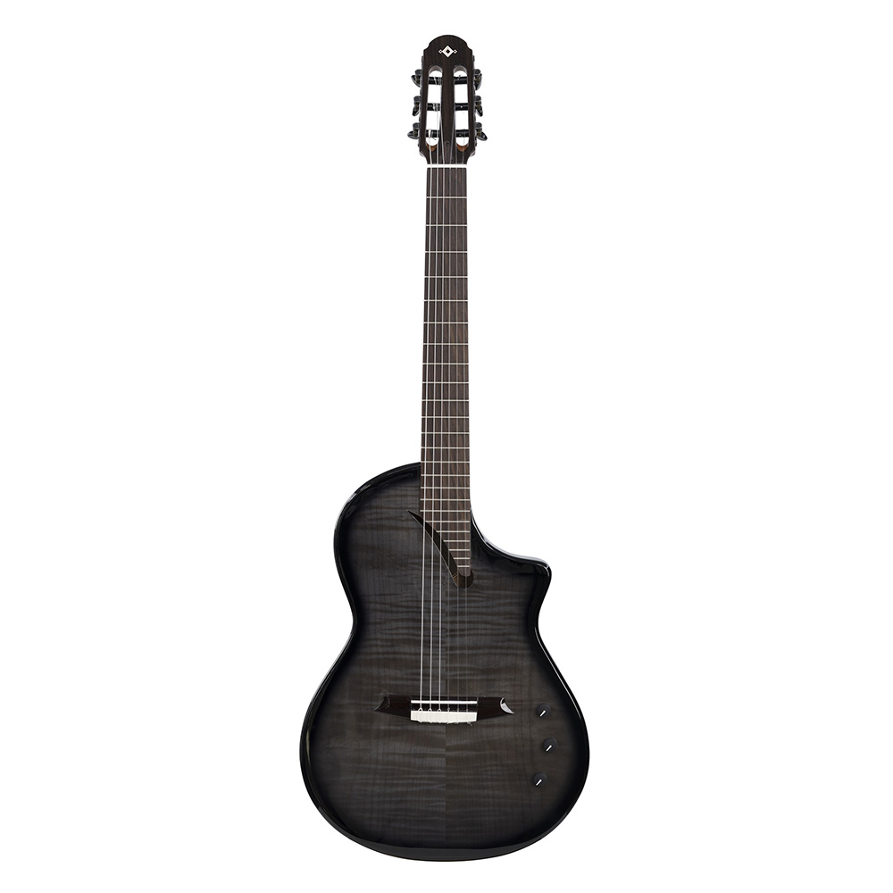Top wood: Flame Maple Back and Sides wood: Mahogany Binding: N/A Purfling: N/A Neck & Fingerboard: Mahogany Neck/Rosewood Fingerboard Rosette: N/A Bridge: Rosewood Truss Rod: Two way Adjustable Finish: High Gloss PU Scale Length: 650mm Nut Width: 48mm Fret Marker Inlays: Mother-of-Pearl at 3/5/7/9/12*2/15/17 Nut & Saddle: Bone Construction: Chambered Solid Body No. of Frets: 24 Neck Shape: C Shape Electronics: SG1 Digital Smart Pickup (includes reverb and delay effects) Gig Bag: Included