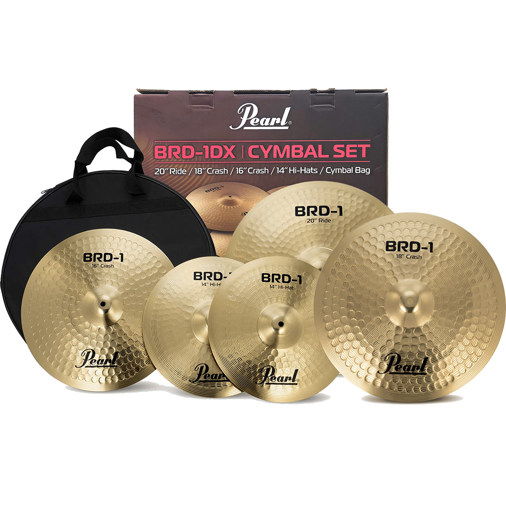 Ready to take your drumming to the next level? The Pearl BRD-1DX Deluxe Cymbal pack is an excellent cymbal upgrade choice for the new drummer looking for great sound without the high price tag. Designed for sonic versatility as well as durability, these hammered brass cymbals offer bright, clear tone with even stick definition. Featuring a 20" Ride, 16" Crash, 18" Crash and 14" set of Hi-Hats, the BRD-1DX even comes with a durable cymbal bag for on-the-go grooves and great sound. Whether you're just starting out or looking to update your playing field, Pearl's BRD-1DX cymbal pack is a perfect fit! Size: 14" Hi-Hats / 16" Crash / 20" Ride / 18" Crash Material: Hammered Brass Finish: Brilliant Finish Cymbal Bag: Included Also available as BRD-1 Standard Set 14/16/20.