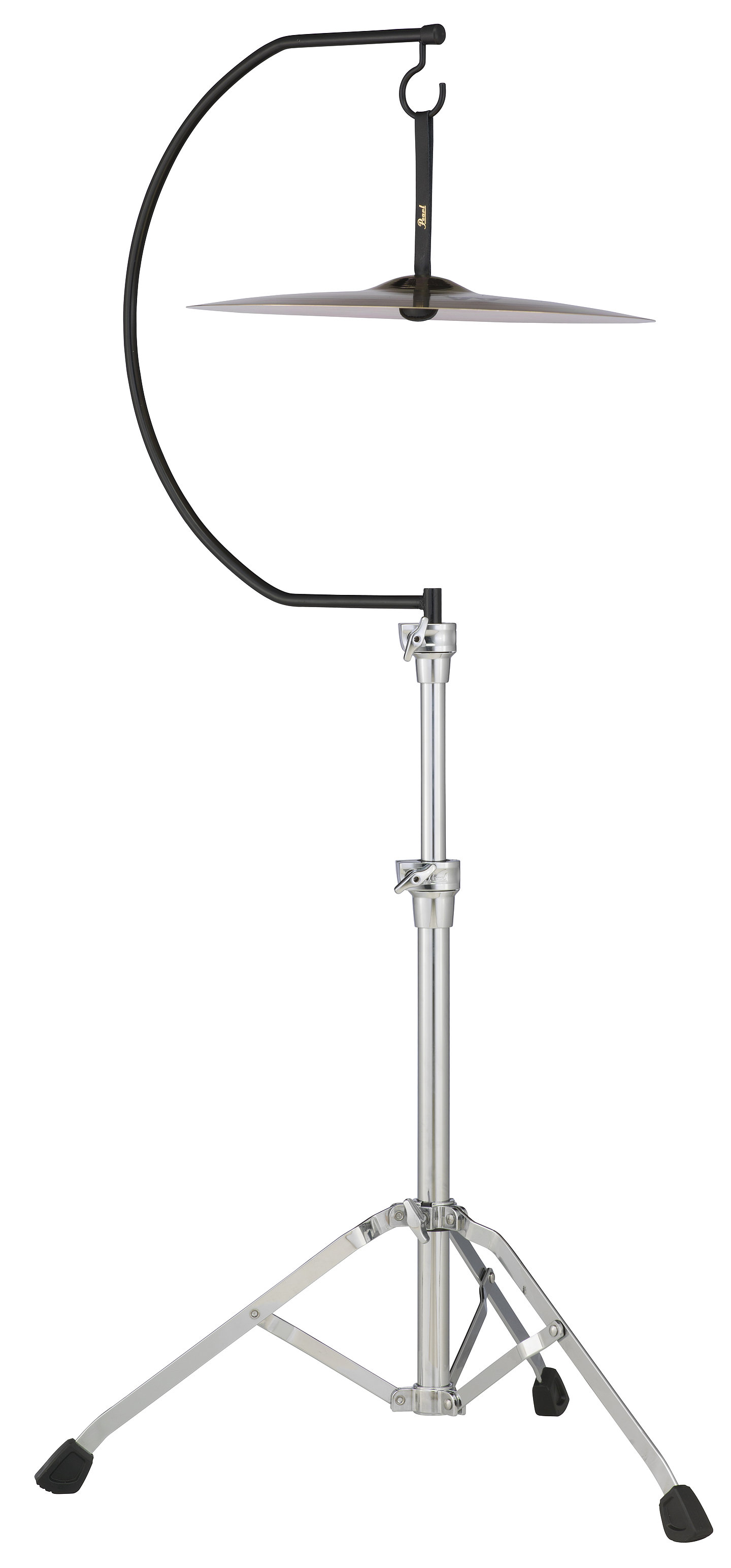 The C-1030SC Goose Neck Cymbal Stand allows for true freely-suspended mounting of orchestral suspended cymbals up to 20" in diameter. The single-braced base is easily height adjustable and features legendary Pearl quality for years of dependable use. The leather suspension strap slips through any cymbal and securely supports the weight with a sewn leather bulb.