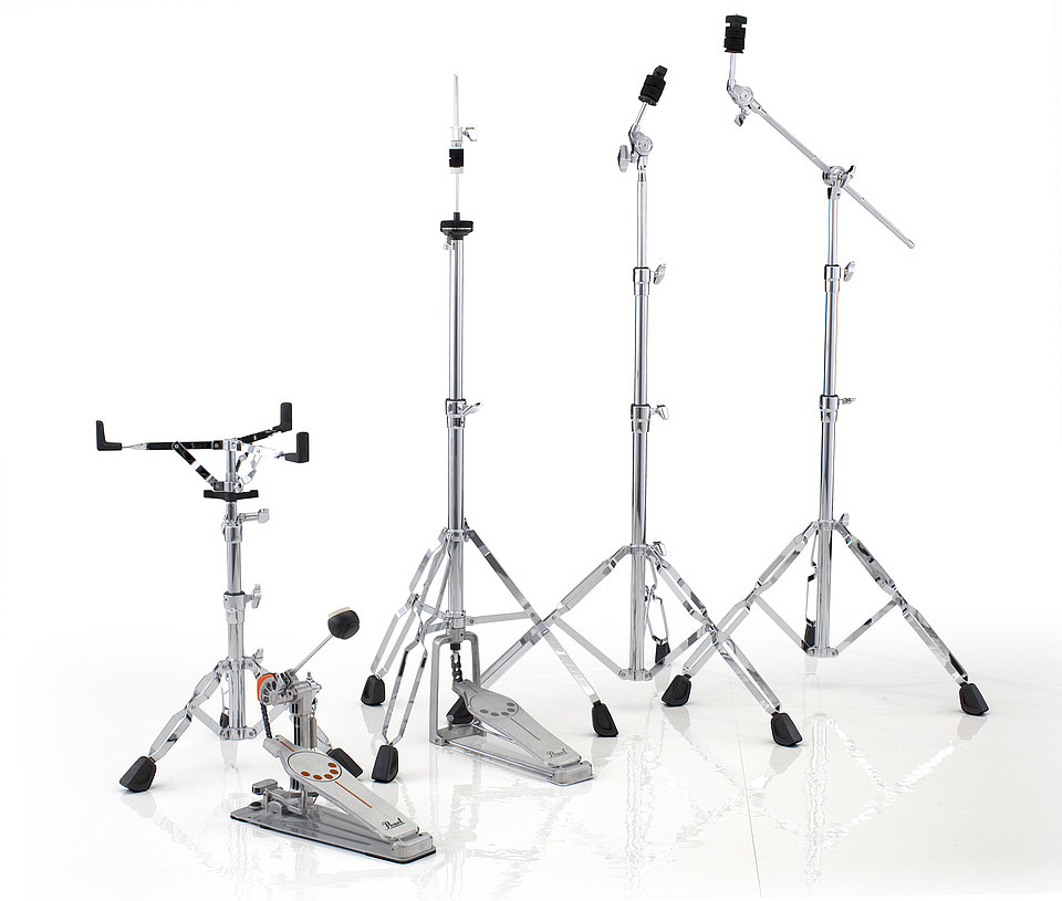 Heavy duty, road worthy, affordable hardware BC-830 boom cymbal stand The Pearl BC-830 Double Braced Cymbal Stand with Uni-Lock Tilter has 2 sections and double-braced legs. The BC-830 also features positive-locking gear tilters for slip-proof cymbal positioning. C-830 cymbal stand The C-830 is a lightweight cymbal stand, yet features a Uni-Lock tilter & double braced legs for a stand that is easy to transport and super sturdy. H-830 hi-hat stand When it comes to entry-level hardware Pearl's H-830 Hi-Hat Stand leads the pack in quality and value. The H-830 hi-hat features double braced legs for exceptional stability while remaining compact and lightweight. A retractable spur is provided for slip-resistance. S-830 snare stand Our S-830 model is standard equiped with our Export line. Lightweight, yet rigidly strong, it's perfect for the local gig and makes load in at the club a breeze. The S-830 has an infinitely adjustable tilter and double braced legs. P-930 pedal Pearl’s P-930 provides a high end performance inspired from our Demon Drive like the longboard footboard, Control Core beater and our Click-Lock spring tension keepers combine with our PowerShifter and Eliminator style cam technology |