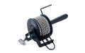 To play the Gatling Cabasa like a standard Cabasas, merely lift the padded clamp and the Gatling Cabasa slides off for handheld playing. |