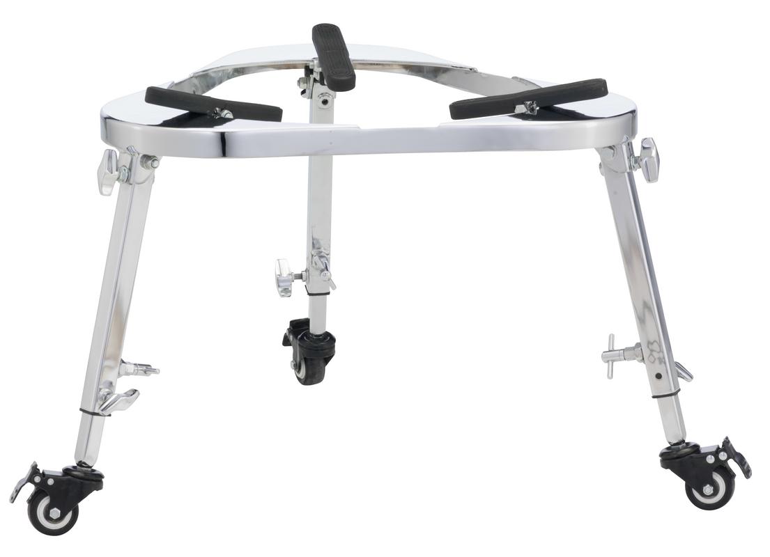 | Conga stands come in many shapes and sizes and the new Pearl 3000 Series Pro Conga Stand delivers on all the touch points needed by todays gigging musician. The sturdy chrome plated legs rest on locking casters that allow you to roll into place and then stay there. Each leg features six 1” Sprint-Lock height adjustments that take the stand from 16” to 21” tall. The PC3000 accommodates any size conga and your drum will rest on three adjustable grippers that are design to firmly hold your drum while protecting the finish. | |||||||||