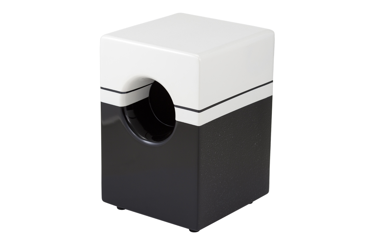 | This fiberglass constructed cajon features a textured playing surfaces which speak remarkably well with brushes and other implements. The front and sides of the cajon feature large, black textured area which fade to a smooth feel towards the top of the cajon.