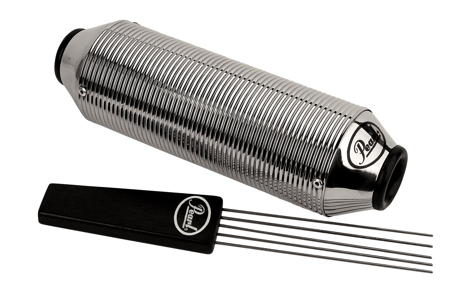 Our Fiber Guiros are strong and resilient compared to organic gourd designs. Our PMG-20 Metal Guiro provides a unique metallic sound and is perfect for Merengue rhythms. Perfect for Merengue rhythms, or just a different metallic sound texture, Pearl’s Metal Guiro will become an essential ingredient in your “toy” bag. Scraper included. |