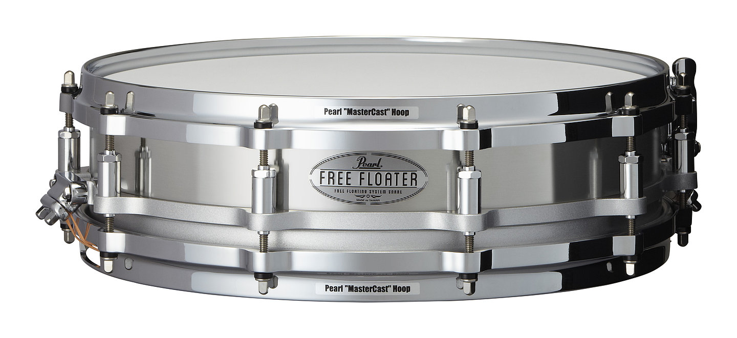 | Task-Specific Innovation Just as each player has an individual voice, snare drums speak differently depending on shell type, size, weight, and application. With the latest Free Floating snare models, Pearl’s engineers crafted each to fit a specific task by model. Our Task-Specific 14x3.5 Piccolo Free Floaters feature 1.2mm Stainless Steel or 6 ply Birch, both known for their brightness, which complement the the bright, penetrating sound that drummers typically require from their piccolo snares. All Task-Specific Free Floating Snare Drums are equipped with Die-Cast hoops, free floating lugs, chrome hardware, Coated Ambassador batter head and Pearl’s new SR-160F strainer, featuring Pearl’s exclusive Click-Lock system which simultaneously “locks” the snare lever and the tension adjuster to your exact liking. The metal shell drums have a classy brushed finish, while the wood shell drums are finished in Pearl’s exclusive Satin Lacquer natural wood finishes. |