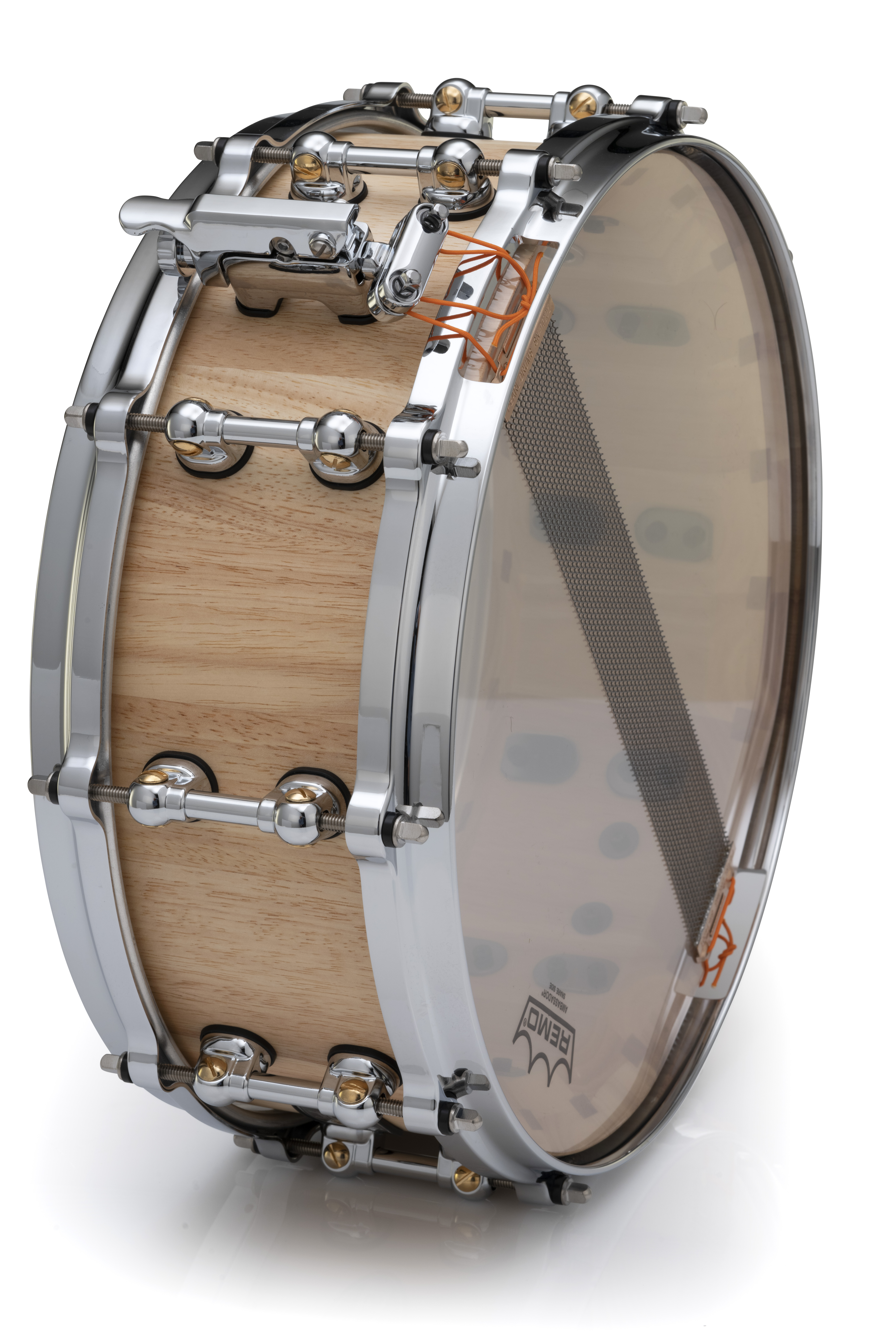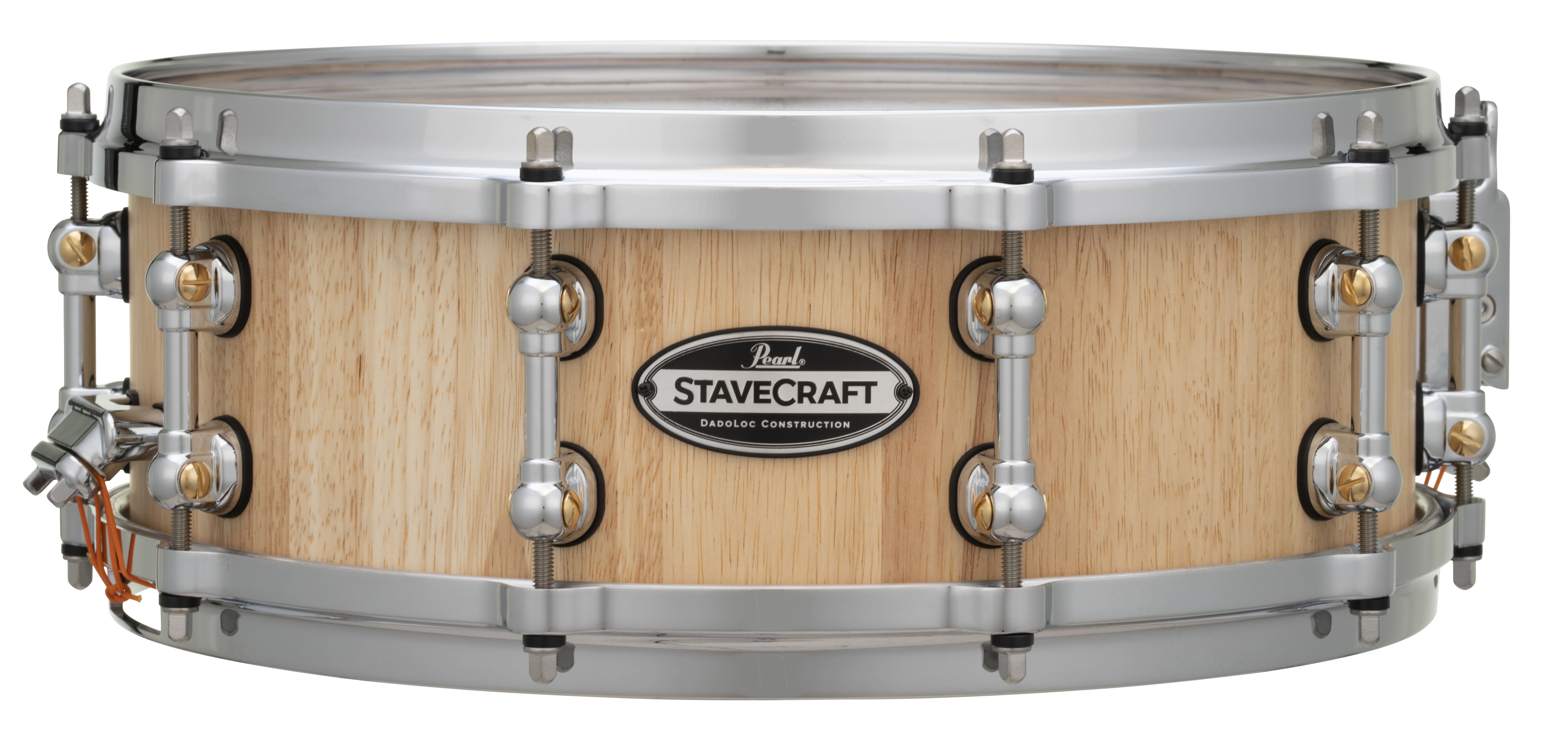 | Yielding solid shell tonal snare spike from a bright mix of hardwoods, Pearl's StaveCraft snare drums are the perfect fusion of old-world workmanship and new-school performance. Each 25mm thick shell starts from two layers of meticulously beveled solid Thai Oak staves. Using a principal exclusive to Pearl, an added stave of exotic Makha wood is inserted into the center Dado channel formed by each stave. Like pieces in an intricate puzzle, this "Dado-Loc" joint increases total shell strength by 50%. The shell is then lathed to a perfectly round 25mm thickness, hand sealed, and fitted with our Swivel Tube Lugs and MasterCast die-cast counter hoops for added volume and tuning precision. Producing sharp sonic focus and piercing volume for the heavy player, StaveCraft snares are a startling addition to any pro player's drumming soundscape. FEATURES: 25mm thick, two layered solid Thai Oak Stave Shell Exclusive Exotic Makha Wood Dado Joint for increased shell strength. Remo USA CS Black Dot Clear Batter 45-degree Bearing Edges MasterCast Die-Cast Hoops STL-55L Swivel Tube Lugs |