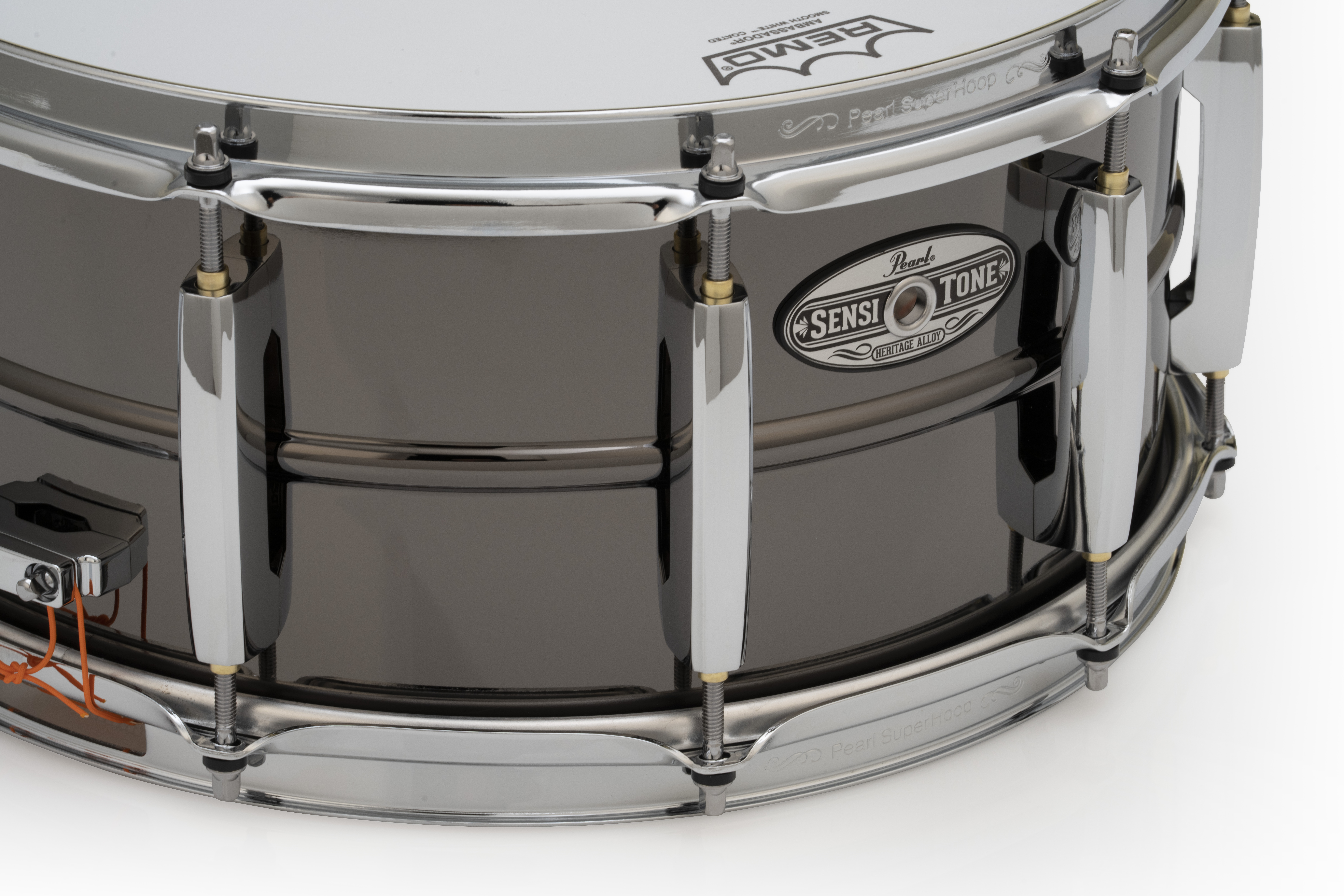From stage to studio, the Black Nickel-plated Brass snare has long been a go-to drum for countless pro players in search of the ultimate snare tone. The SensiTone Heritage Alloy Brass snare's 1mm beaded shell delivers the beautiful tone of a timeless classic with enough sonic flexibility to make it fit in any genre. Features CL Bridge lugs and Pearl's classic SR-017 snare strainer.