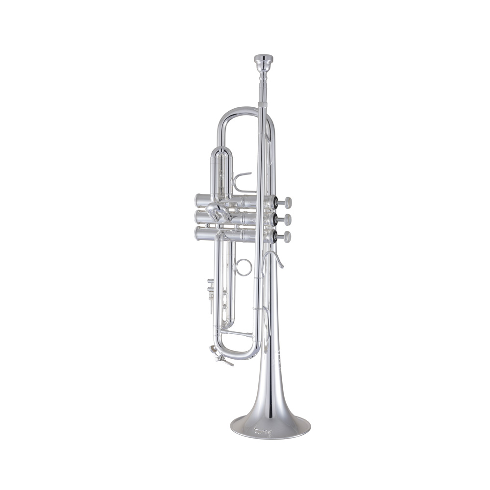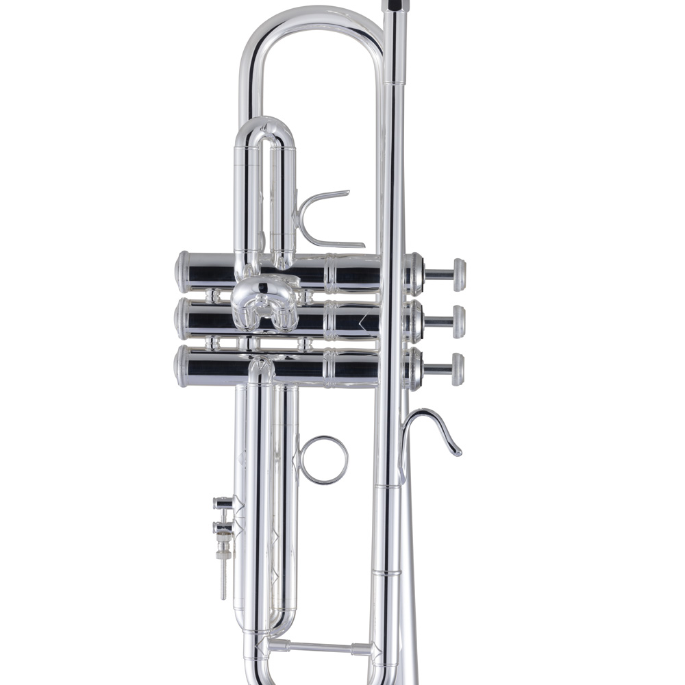 .459" ML bore, one-piece valve casing, standard-weight body with nickel outer slides, standard-weight yellow brass one-piece hand-hammered #43 bell, #25R leadpipe Reverse tuning, Silver-plated, hardshell case.