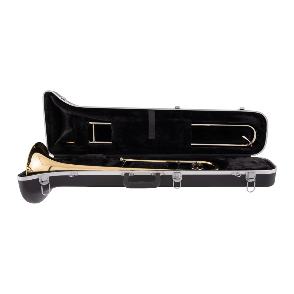 .500" bore, reverse main tuning slide, yellow brass bell, nickel silver outer handslide tubes, nickel silver crook. Bach 12C mouthpiece included. Soft-sided ABS hard case.