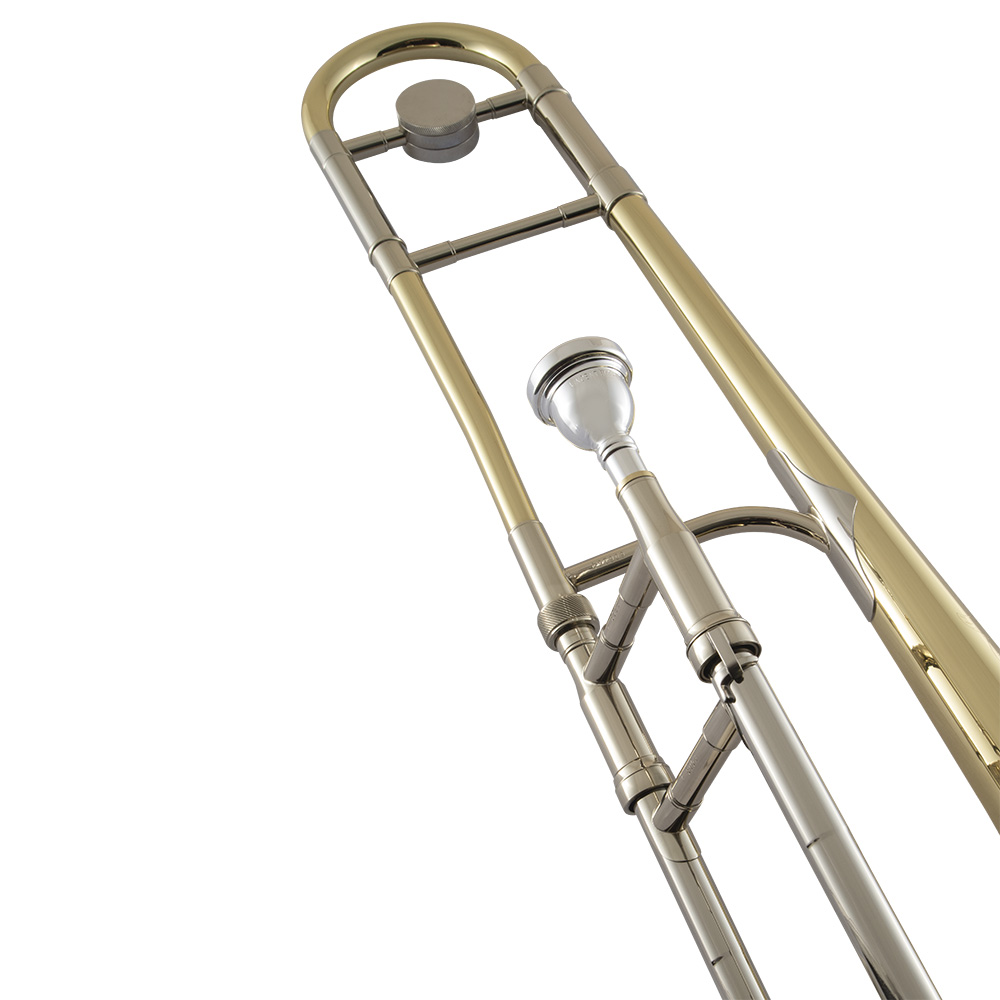 .508" Bore, 8" Yellow Brass Bell, Nickel silver outer slides, 3-piece balancer, Deluxe engraving, Lacquered Finish, Bach Small Shank Mouthpiece, Lightweight molded case