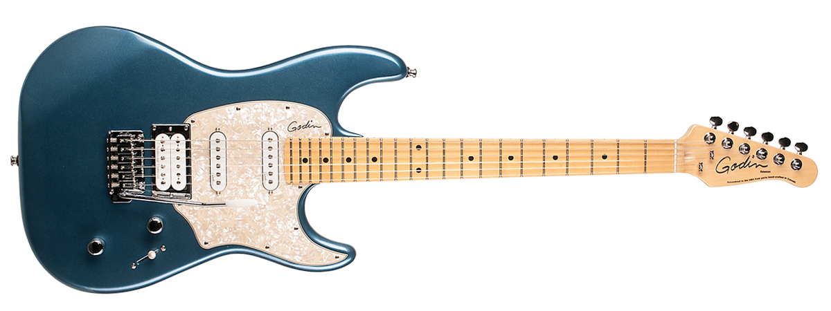 The Session features a rock maple neck with rosewood or maple fingerboard, Canadian Laurentian Basswood body, 2x Godin GS-1 single-coils housed in a vintage white pickguard and a Seymour Duncan SH-11 humbucker in the bridge, along with a 5-way switch, 1x volume and 1x push/pull tone knob that splits the humbucker.