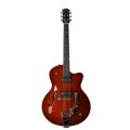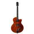 Made from Canadian Wild Cherry, the body of the 5th Avenue features a molded arched top and back; as well as an adjustable bridge, classic F-holes, contoured high-gloss headstock, floating pickguard, and cream binding. Also, the rustic beauty of its Custom Polished Finish creates a gorgeous satin sheen reminiscent of the 19th century. |
